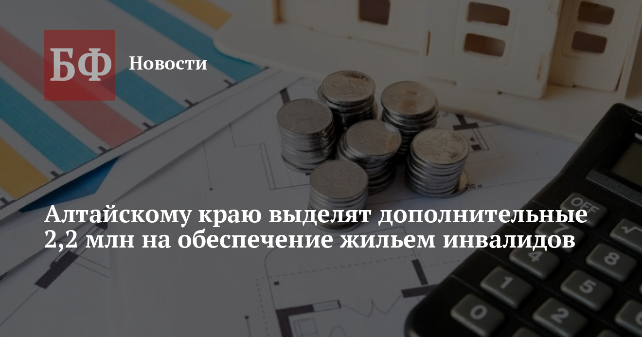 Алтайский край попал в список субъектов РФ, которым дополнительно выделят средства на обеспечение жильем граждан с ограниченными возможностями здоровья. Согласно документу, опубликованному на сайте правительства РФ, на эти цели региону выделят 2,2 млн рублей.