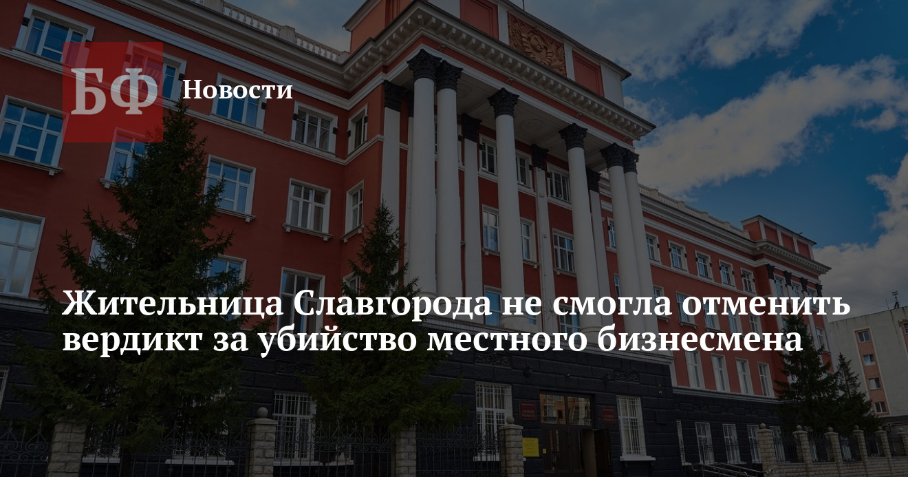 По информации краевого надзорного органа, в июне этого года жительница Славгорода Марина Кириллова, осужденная за убийство местного предпринимателя Сергея Жабина, и ее адвокат Евгений Репенек обратились в Алтайский краевой суд с апелляционными жалобами, усомнившись в законности в проведении процедуры суда присяжных. После проверки доводов стороны защиты краевой суд не выявил процессуальных нарушений в ходе судебного разбирательства, что исключило возможность отмены судебного решения. Приговор был оставлен без изменений. Решение суда вступило в законную силу. Осужденная будет отбывать наказание в исправительной колонии общего режима.