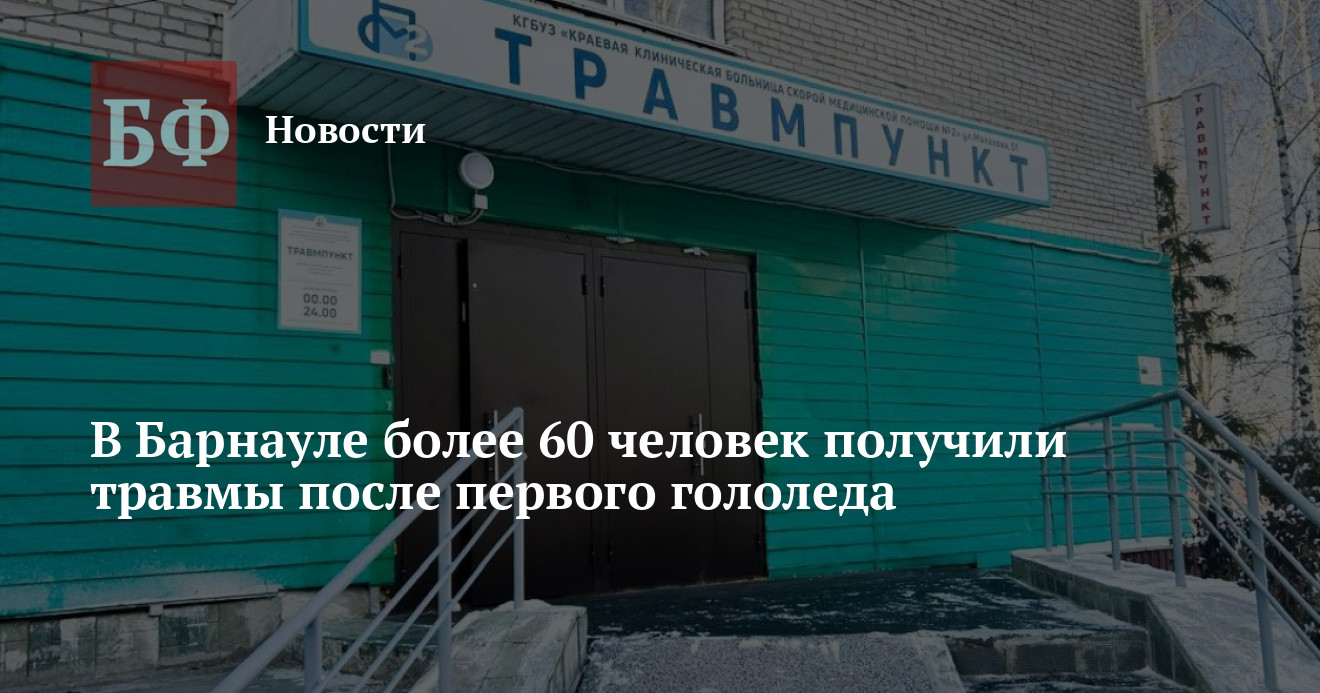 С наступлением первого гололеда жители Барнаула начали массово обращаться за медицинской помощью. По информации Краевой клинической больницы скорой медицинской помощи № 2 (БСМП-2), за последние сутки травмы получили 65 человек.