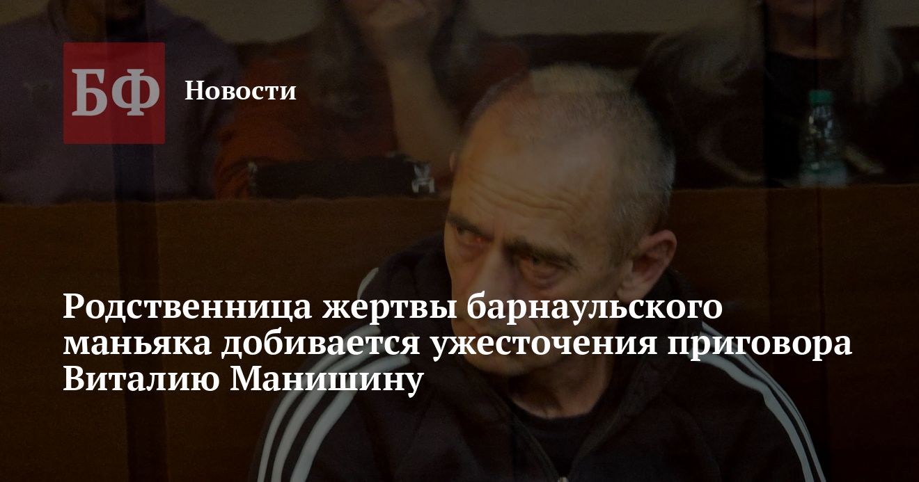 Жалоба по делу Виталия Манишина была зарегистрирована 10 ноября в Калманском районном суде. В беседе с ИА «Банкфакс» в суде сообщили, что апелляцию подала жительница республики Тыва Шончалай Андар с целью ужесточить приговор Виталию Манишину. Отмечается, что она является родственницей одной из жертв «политеховского» маньяка - Чодура Ооржак. В суде уточнили, что на данный момент материалы дела еще не переданы в Алтайский краевой суд. Это связано с тем, что суд дал время для предоставления возражений на апелляционную жалобу адвоката Манишина.