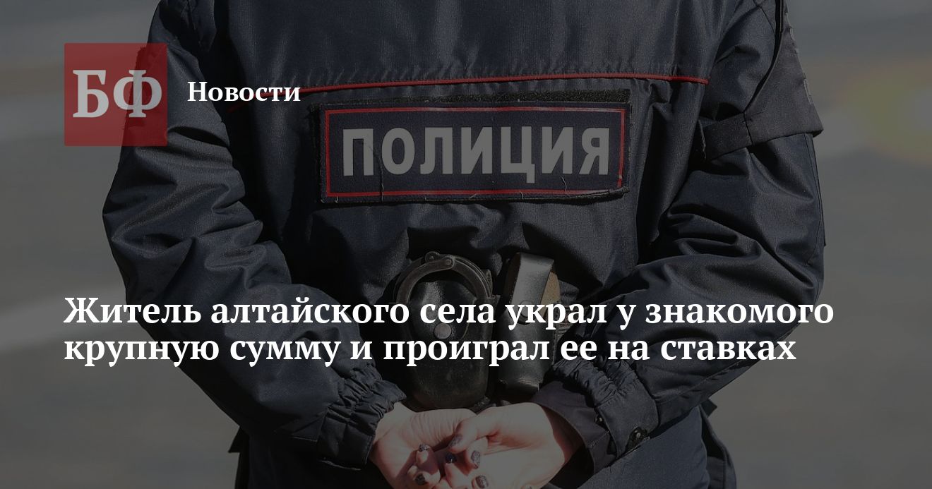 В Алтайском крае полиция расследует уголовное дело по факту кражи денег с банковского счета у жителя Кулундинского района. Как сообщает пресс-служба ГУ МВД России по региону, молодой человек похитил с банковского счета знакомого около 350 тысяч рублей и проиграл все деньги в букмекерской конторе.
