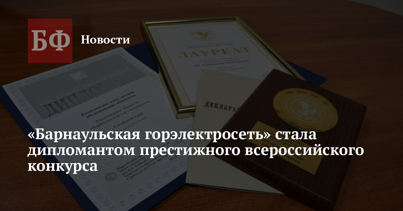 АО «Барнаульская горэлектросеть» отмечено дипломом всероссийского конкурса «100 лучших товаров России». Как сообщили в пресс-службе компании, конкурсная комиссия высоко оценила методы комплексного очно-заочного обслуживания абонентов предприятия в номинации «Услуги для населения».