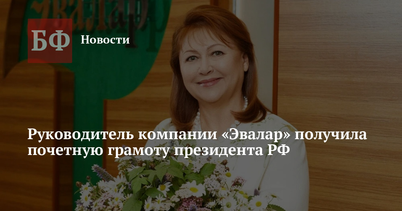 Основатель и бессменный руководитель фармацевтической компании «Эвалар» Лариса Прокопьева получила почетную грамоту президента России за достигнутые трудовые успехи и многолетнюю добросовестную работу. Как сообщили в пресс-службе компании, соответствующее распоряжение на минувшей неделе подписал президент РФ Владимир Путин.
