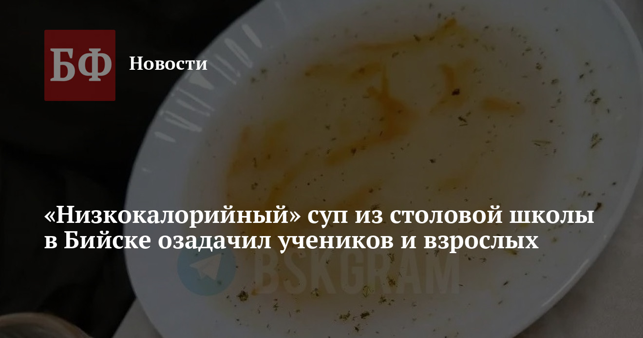 20 ноября «Бийск 22» опубликовал критический пост об организации питания в одном из образовательных учреждений города. «Предайте огласке. Школа № 3 - питание отвратительное. Все невкусное, холодное. Дети не едят там, бегают, кто постарше, до магазина просто классами. А младшие просто голодные, приходится с собой что-то давать для перекуса», - заявил, вероятно, возмущенный родитель ученика. Сопровождает публикацию фотография супа, состав которого выглядит очень странно: в бульоне плавает тертая морковь и микроскопические кусочки зелени. В комментариях люди гадают, что это за блюдо.