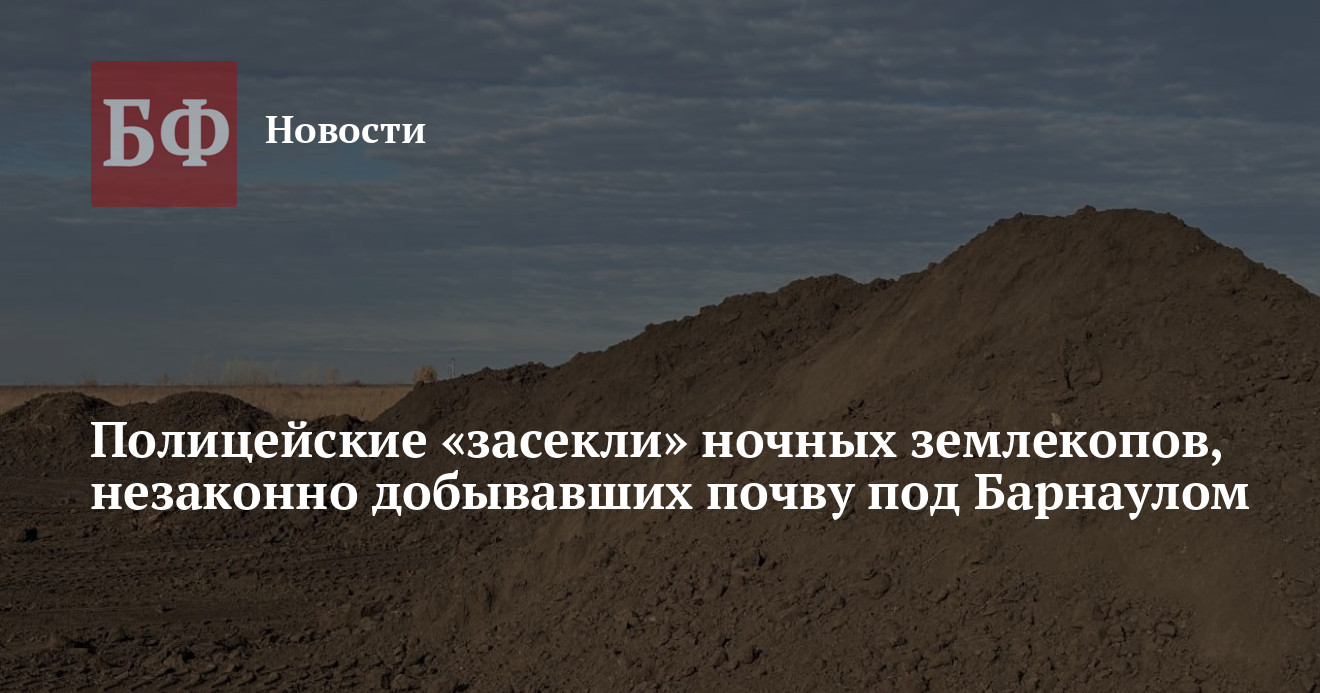 Сотрудники управления экономической безопасности и противодействия коррупции ГУ МВД России по Алтайскому краю совместно с общественниками реготделения «Общероссийского Народного фронта» провели проверку по факту возможного хищения плодородного слоя земли с участков, расположенных в Индустриальном районе Барнаула. Во время проверки выяснилось, что предприниматели, не имея соответствующих разрешений, под видом законной деятельности добывали почву, которую затем использовали в своей хозяйственной деятельности. Предварительно установлено, что ее вывозили с участка площадью более 2 га, а объем похищенной земли составляет более 3000 куб. м.