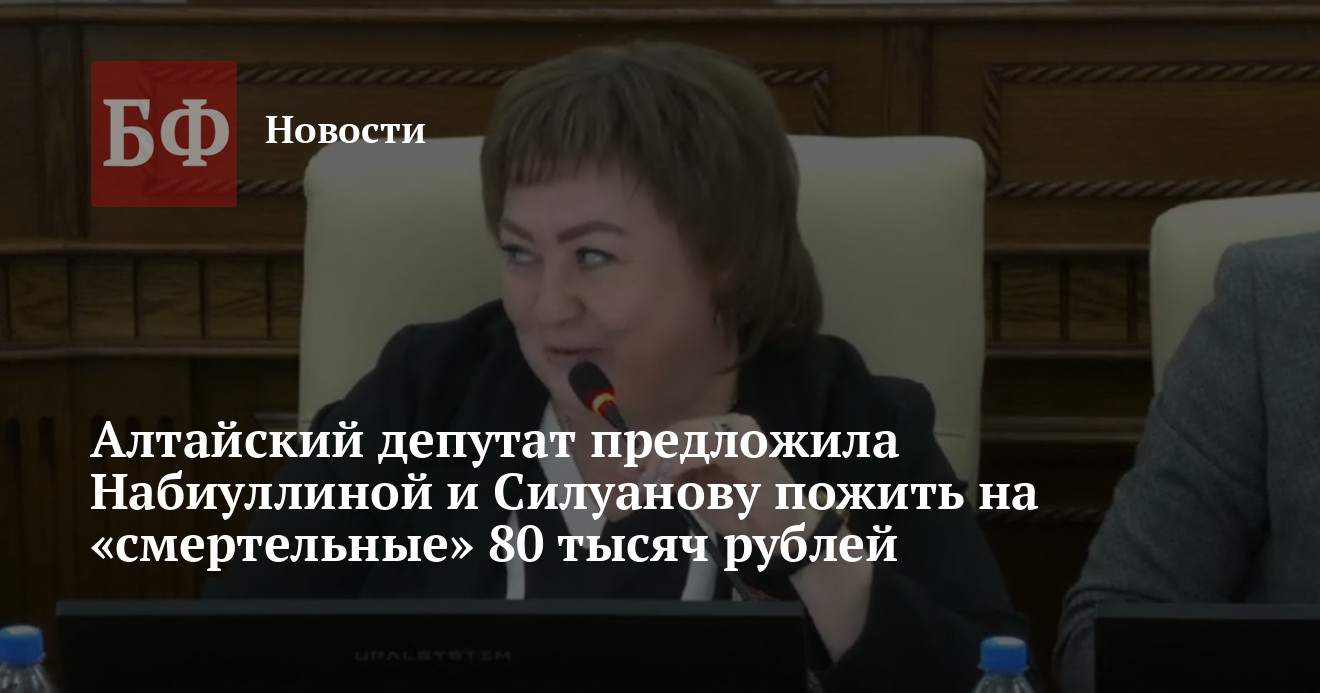 Евгения Боровикова, депутат Алтайского Заксобрания от фракции «Справедливая Россия», выразила недовольство по поводу обсуждений повышения пенсионного возраста и выступила с эмоциональным спичем на минувшей сессии. Она подвергла критике экономическую политику главы Центробанка РФ Эльвиры Набиуллиной и министра финансов РФ Антона Силуанова и предложила им попробовать пожить на зарплату в 80 тысяч рублей, вероятно, считая, что это маленькая сумма.