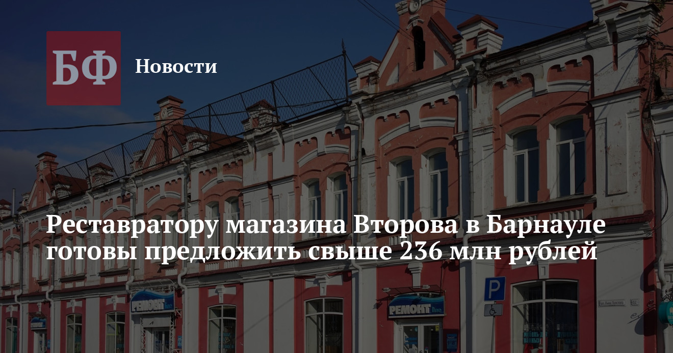 В Барнауле объявили повторный конкурс на проведение ремонтно-реставрационных работ в здании магазина купца Второва, которое признано объектом культурного наследия регионального значения. Согласно информации портала ГИС «Закупки», максимальная цена выросла до 236 млн рублей.