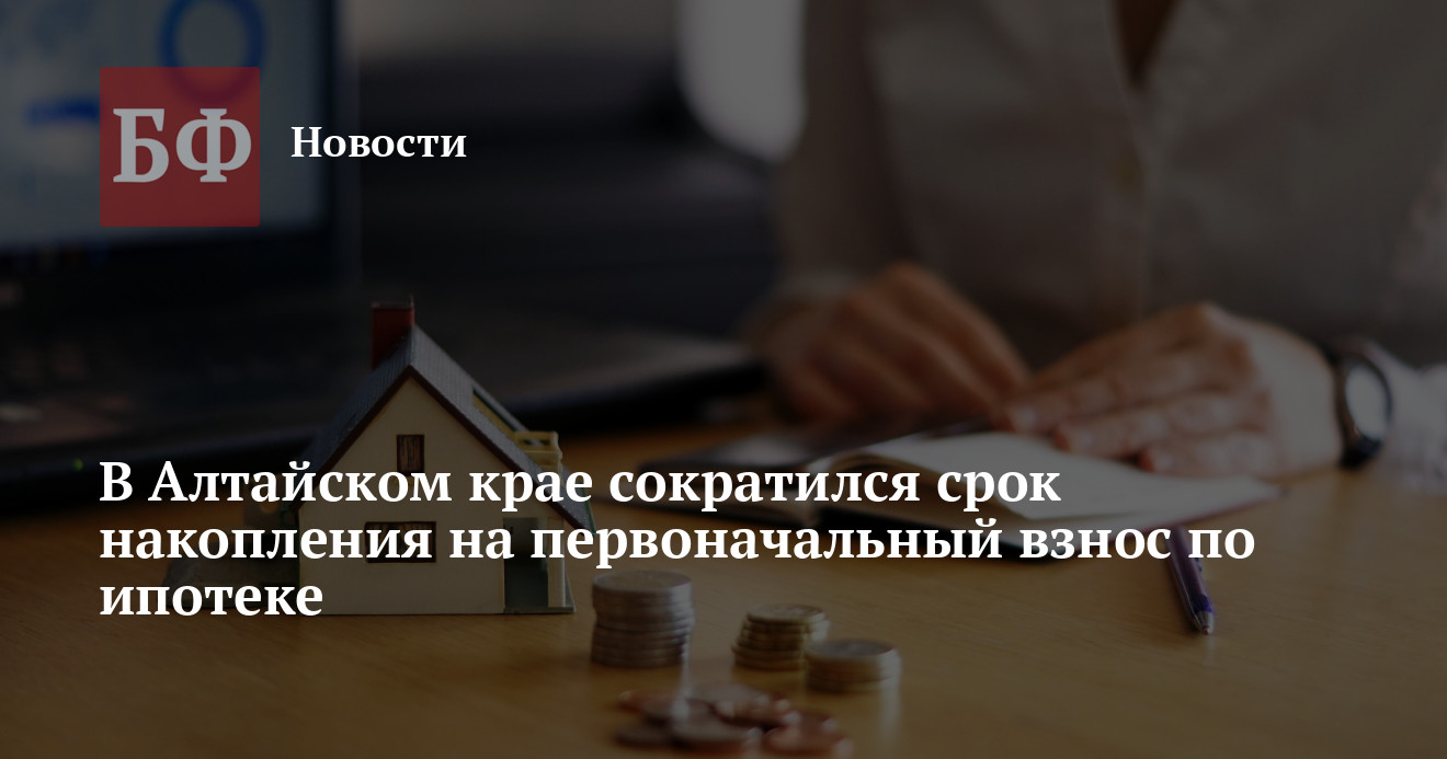 Жителям Алтайского края потребуется 4,31 года, чтобы накопить на первоначальный взнос по ипотеке на сумму 1,69 млн рублей, хотя ранее на это уходило 4,6 года. Об этом говорится в исследовании РИА «Новости».