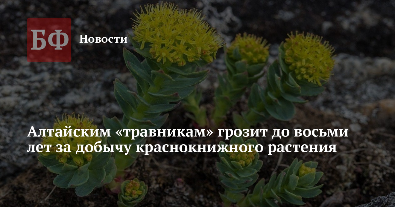 Прокурор Усть-Коксинского района утвердил обвинительное заключение по уголовному делу в отношении двух жителей Горно-Алтайска, которым вменяют незаконную добычу растения «Родиола розовая» («Золотой корень»), занесенного в Красную книгу России. Им грозит до восьми лет лишения свободы, сообщили в прокуратуре Республики Алтай.