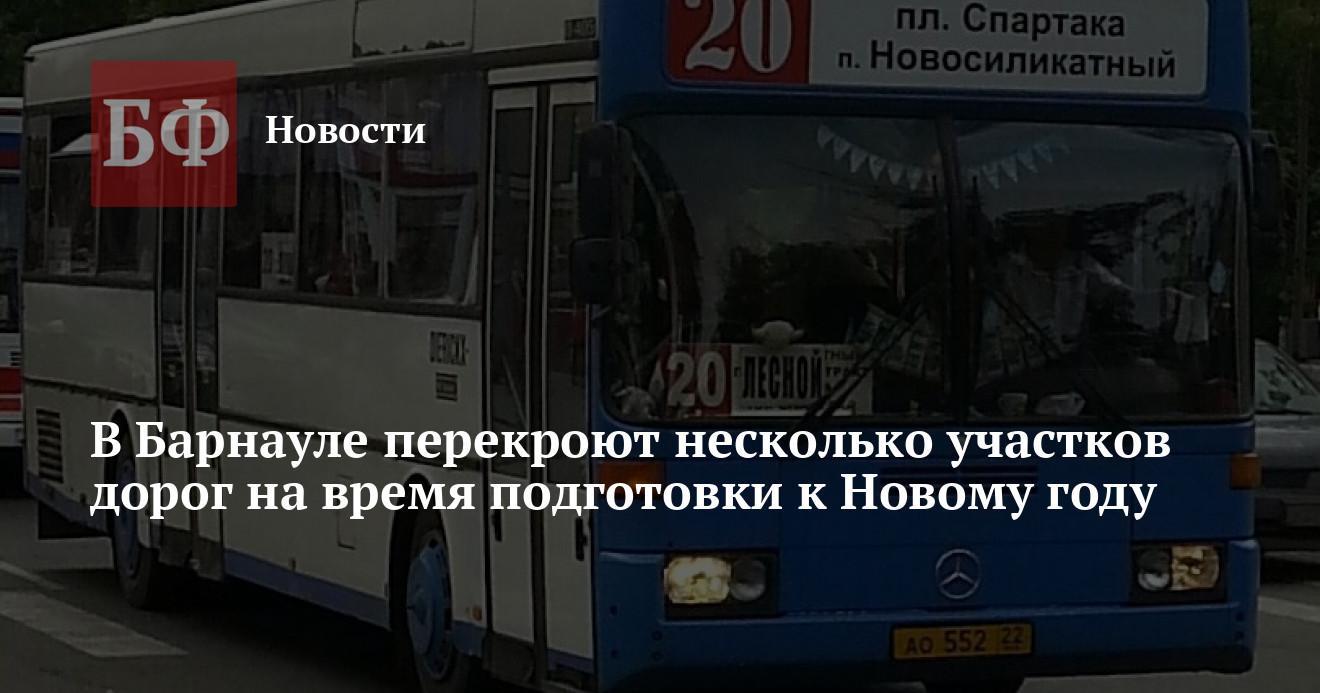 С 10 декабря по 20 января будут закрыты подъезды к площади рядом с Дворцом культуры «Южный». Однако это не скажется на маршрутах общественного транспорта. 25 декабря с 17:30 до 19:00 закроют проезд от дома № 50 до дома № 50а на Первомайской улице в селе Власиха, при этом схемы движения общественного транспорта останутся прежними. В тот же день с 17:30 до 19:00 перекроют дорогу от здания № 14а к2, на Новосибирской улице до дома № 16в в микрорайоне «Новосиликатный». Движение общественного транспорта не изменится. С 26 декабря будут закрыты участки на улицах Георгия Исакова (от четной стороны улицы Островского до нечетной стороны, с 15:00 до 19:30), Пушкина (от дома № 74 до проспекта Ленина, с 14:00 до 20:00), Ползунова (от Красноармейского проспекта до проспекта Ленина, с 14:00 до 20:00), Льва Толстого (от проспекта Ленина до проспекта Социалистического, с 14:00 до 20:00) и на проспекте Социалистическом (от улицы Гоголя до улицы Мало-Тобольской, с 14:00 до 20:00).