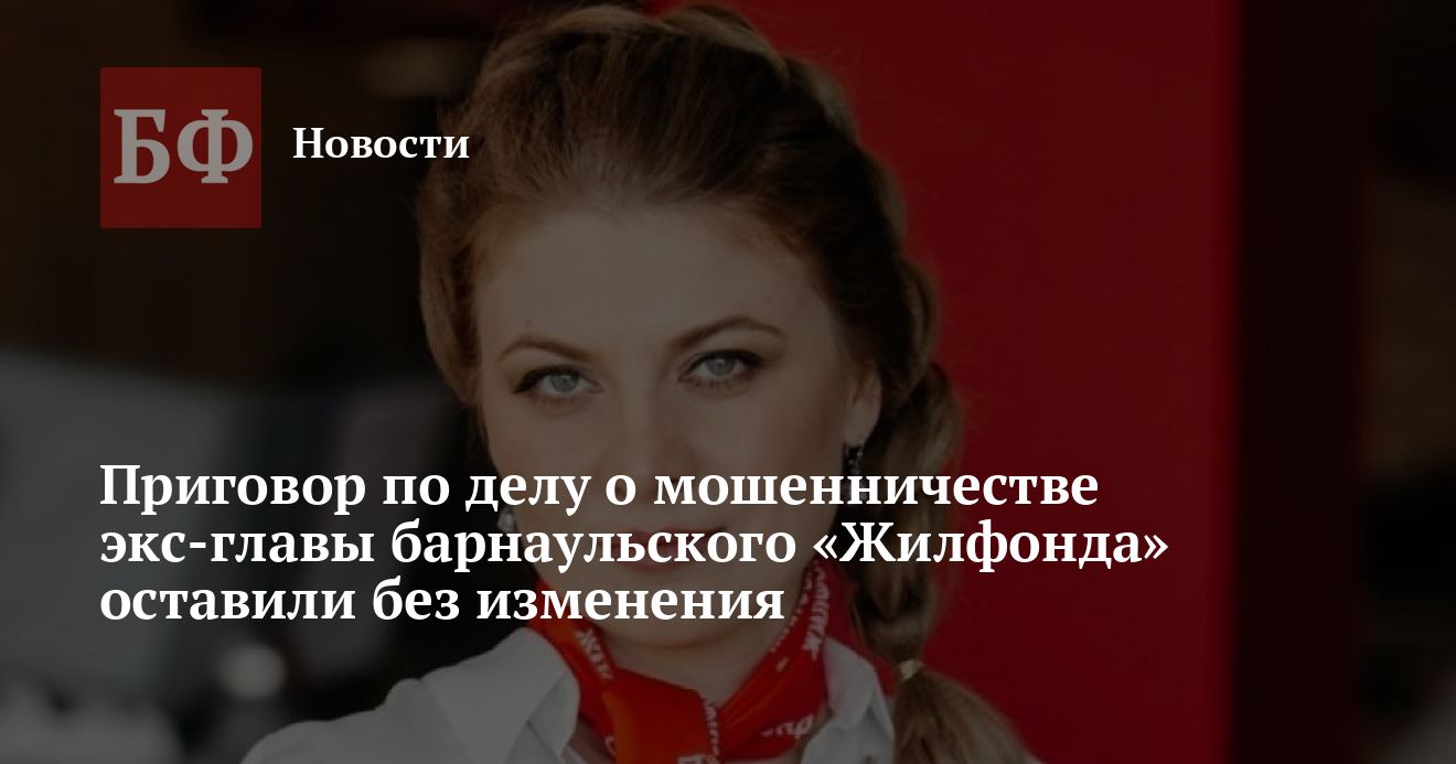 В Алтайском крае в апелляционном порядке рассмотрели дело в отношении бывшего руководителя подразделения агентства недвижимости «Жилфонд» в Барнауле Людмилы Авдюхиной, которую приговорили к семи годам колонии за многомиллионное мошенничество. Как сообщили в пресс-службе прокуратуры региона, приговор оставили без изменения.