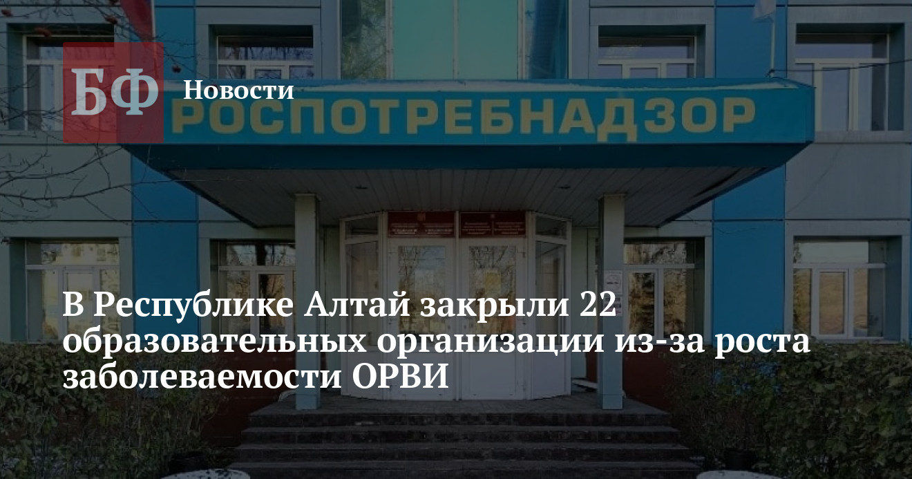 В связи с ростом заболеваемости ОРВИ в Республике Алтай закрыли на карантин 22 образовательные организации. Также среди детей были выявлены случаи заболеваемости COVID-19, внебольничной пневмонии, кишечной инфекции и ветряной оспы, сообщили в региональном Роспотребнадзоре.