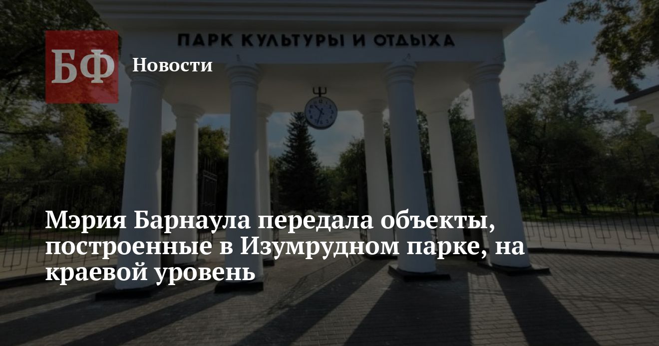 Объекты, которые построили в барнаульском парке «Изумрудный» в рамках реконструкции, передали из городской собственности в краевую. Такое решение приняли муниципальные депутаты. Документ опубликован на правовом портале Барнаула.