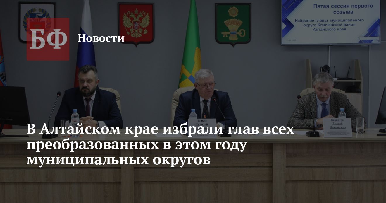 Напомним, что в течение декабря депутатские объединения восьми муниципалитетов должны были избрать глав, поскольку бывшие районы преобразовались в округа. Речь идет о Зональном, Ключевском, Кулундинском, Немецком национальном, Панкрушихинском, Петропавловском, Солонешенском и Табунском округах. В этих муниципалитетах прежние главы сохранили руководящие посты.