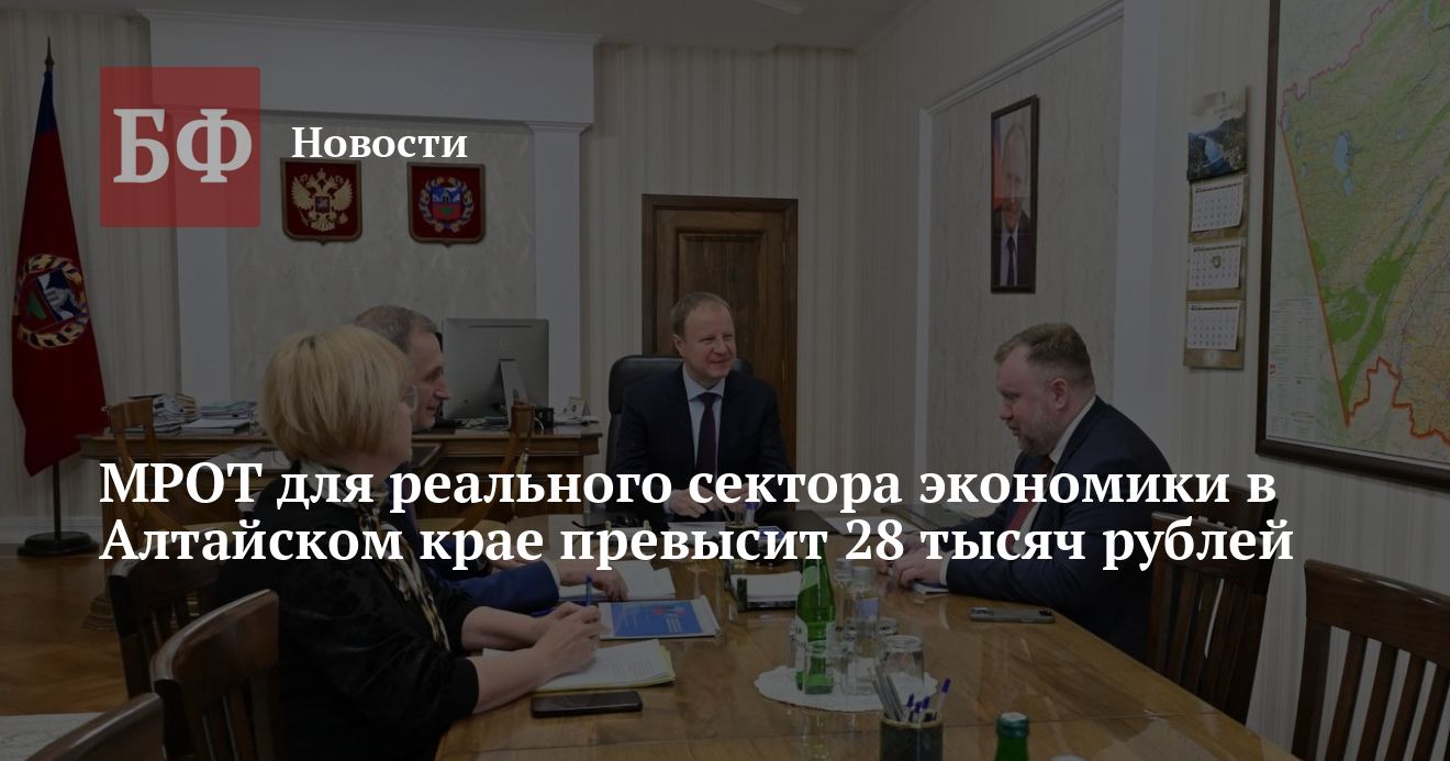12 декабря губернатор региона Виктор Томенко провел рабочую встречу с председателем Алтайского краевого союза организаций профсоюзов Иваном Пановым, в ходе которой было решено в ближайшее время подписать обновленные региональные соглашения, в том числе по минимальной заработной плате. По словам главы региона, новый размер МРОТ для внебюджетного сектора в будущем году превысит 28 тысяч рублей.