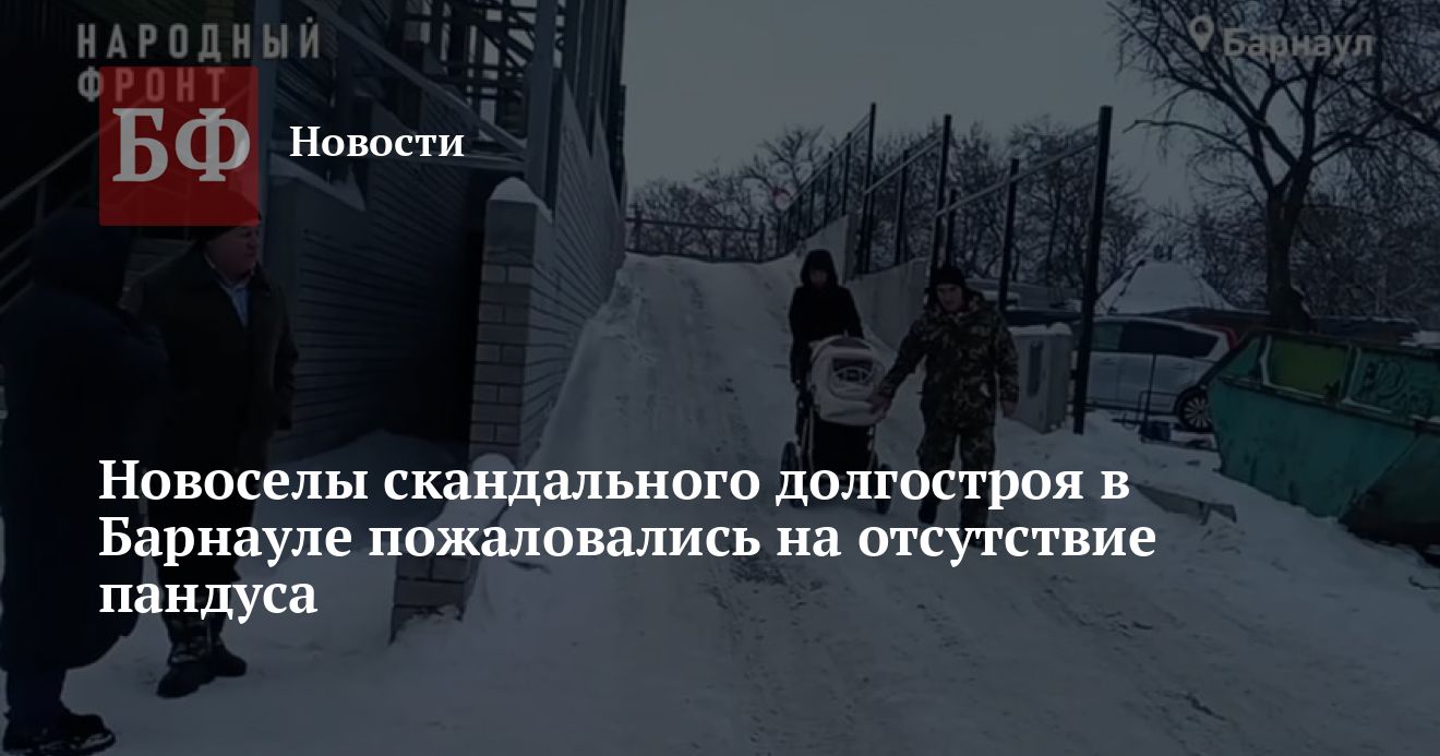 К активистам «Народного фронта» обратились жители Барнаула, ребенок которых страдает ДЦП. Они сообщили, что купили квартиру в доме по улице Петра Сухова, 34. Там отсутствует пандус для колясок, из-за этого им и мамам с колясками приходится спускаться по крутому и узкому автомобильному съезду. Его не чистят, в результате чего в конце ноября этого года одна из жительниц упала и сломала левую плечевую кость. Сама семья с ребенком-инвалидом на данный момент вынуждена проживать в другом месте.