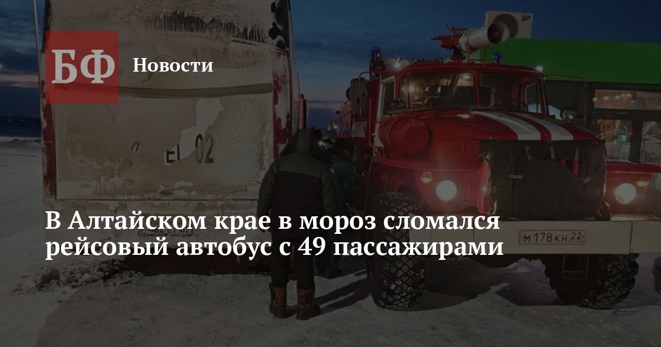 Утром 14 января в Алейском районе сломался междугородний автобус «Усть-Каменогорск - Новосибирск», в котором находилось 49 пассажиров. Как сообщила пресс-служба ГУ МЧС по Алтайскому краю, спасатели оперативно разместили людей в теплом помещении и помогли в ремонте транспорта в условиях усиливающихся морозов.