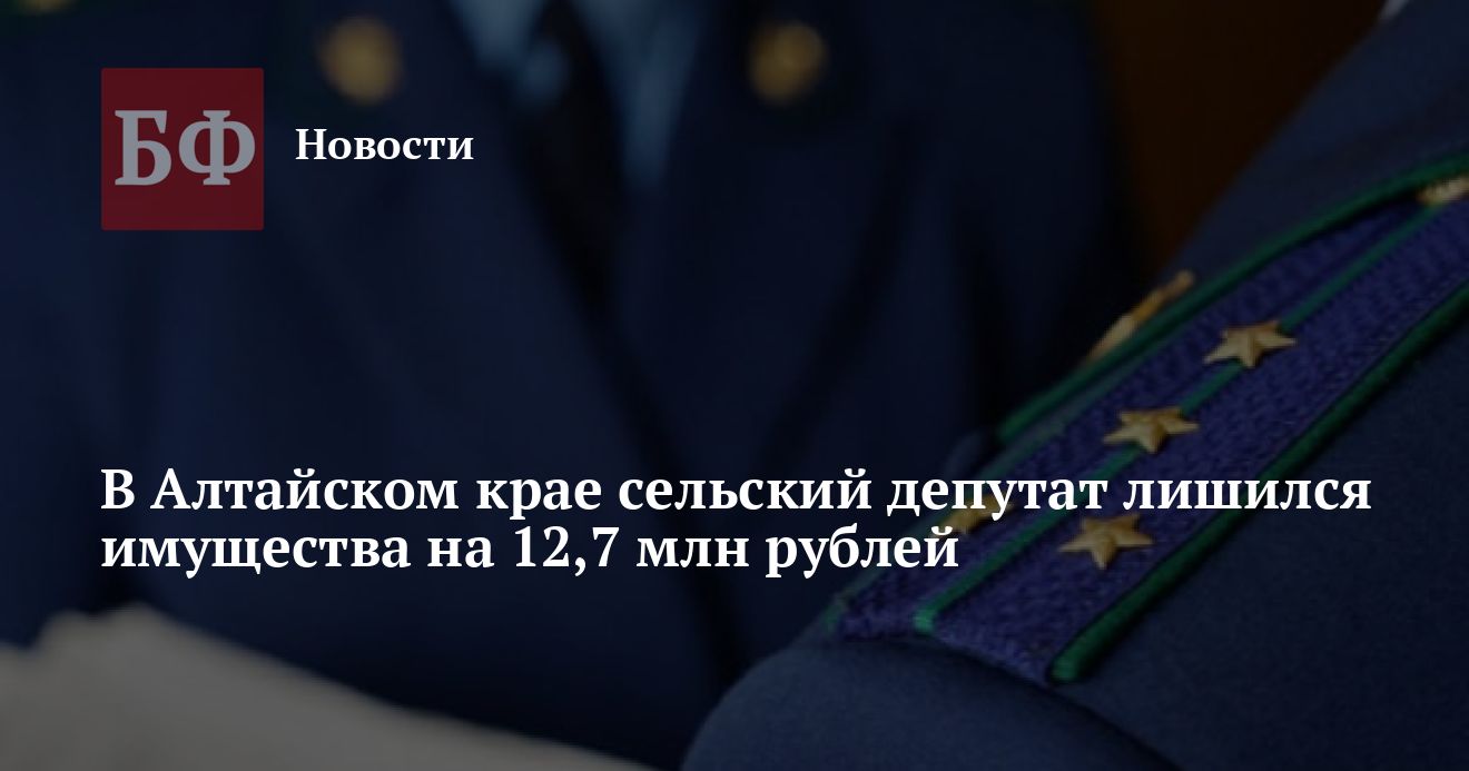 Прокуратура Алтайского края организовала проверку исполнения законодательства о противодействии коррупции. В ходе нее было установлено, что в 2023 году депутат Троицкого сельсовета вместе с супругой приобрели квартиру и парковочное место в Барнауле на общую сумму в 12,7 млн рублей. Это не соответствовало официальному доходу семьи за предшествующие три года. Правительство Алтайского края было поставлено в известность об этом. В ходе проверки, проведенной кабмином региона, депутат не смог доказать законность происхождения средств, на которые были куплены объекты недвижимости.