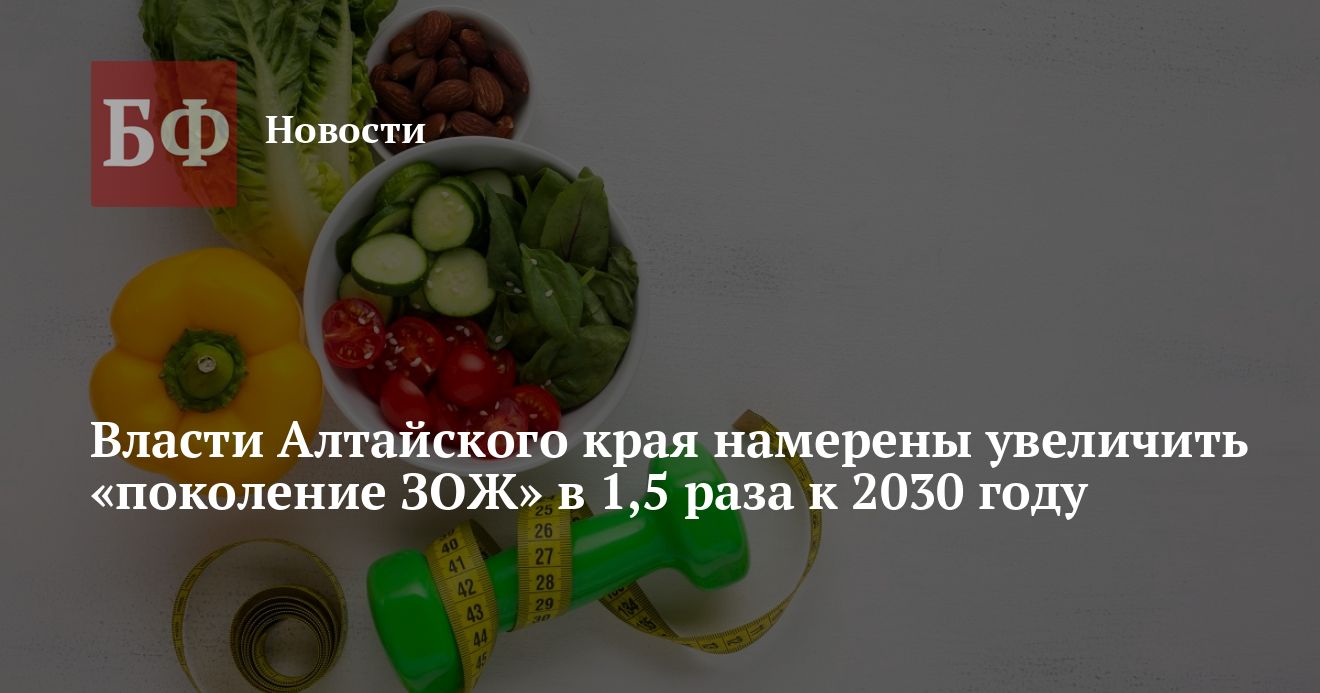 В Алтайском крае утвердили программу «Укрепление здоровья и формирование здоровьесберегающей среды», согласно которой, уже к 2030 году в число жителей региона, поддерживающих ЗОЖ, должно увеличиться в 1,5 раза. Основные силы будут направлены на борьбу с курением, ожирением, алкоголизмом, а также на просвещение масс, следует из постановления краевого правительства, подписанного 13 января губернатором Виктором Томенко.
