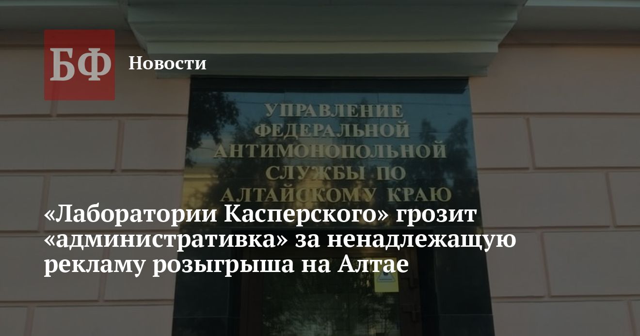 Алтайское краевое УФАС признало АО «Лаборатория Касперского» нарушителем закона о рекламе. Как сообщили в пресс-службе ведомства, компания распространяла рекламу розыгрыша билетов в парк аттракционов без сведений о сроках проведения акции.