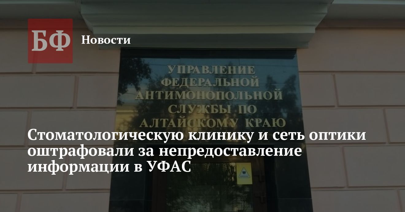 Алтайское УФАС оштрафовало фирмы, который управляют в Барнауле магазином оптики и стоматологией, за невыполнение запроса на предоставление информации. По данным ведомства, у обеих компаний ранее были обнаружены нарушения в рекламе услуг.