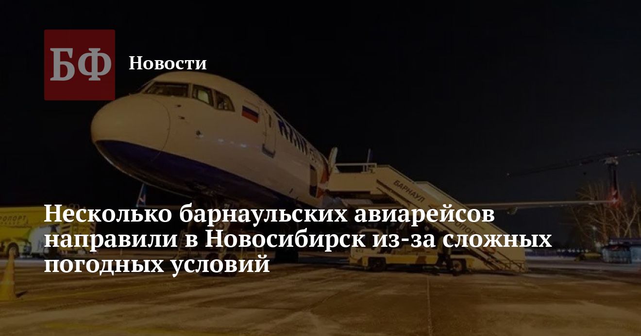 По данным министерства транспорта Алтайского края, речь идет о рейсе «Москва - Барнаул» (авиакомпания «Сибирь»). Планируемое время прибытия в Барнаул - 12:35. Также в аэропорт Новосибирска перенаправили самолет «Москва - Барнаул» (авиакомпания «Аэрофлот»), планируемое прибытие в краевой центр - в 13:55. В Минтрансе сообщили о той же ситуации с рейсом «Санкт-Петербург - Барнаул» авиакомпании «Северный Ветер», запланированный на 11:20.