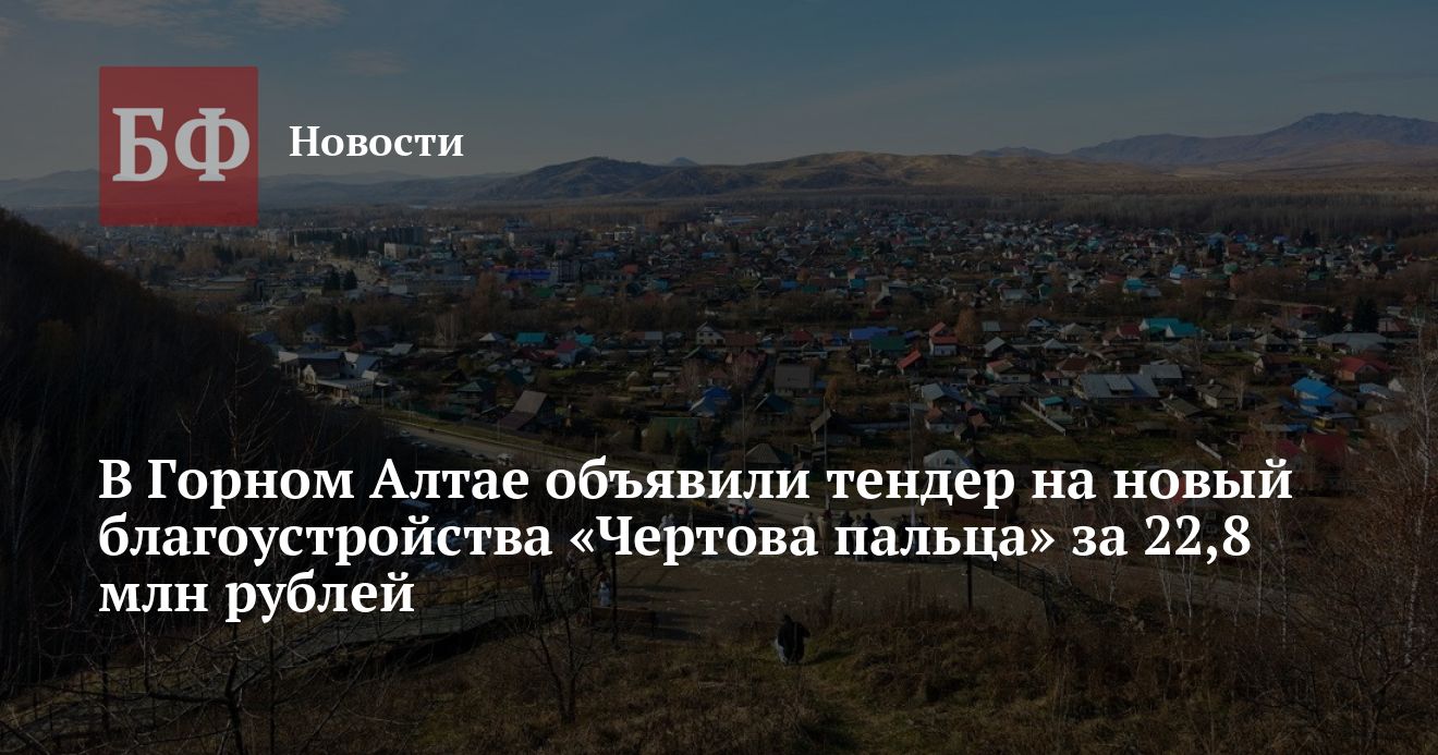 28 января администрация Майминского района ищет подрядчика на второй этап благоустройства смотровой площадки «Чертов палец». Как указано на портале ЕИС «Закупки», на выполнение работ выделили более 22,8 млн рублей.