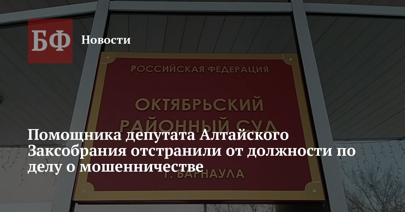 30 января Октябрьский районный суд Барнаула принял решение временно отстранить от работы помощника депутата Алтайского Заксобрания Светлану Кербер, в отношении которой возбуждено уголовное дело о мошенничестве. Об этом ИА «Банкфакс» сообщила адвокат подозреваемой Елена Фогель.