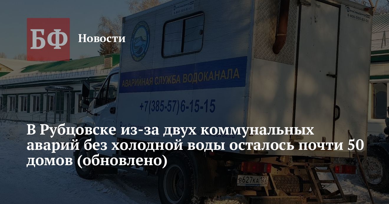 Вечером 1 февраля в Рубцовске произошли две коммунальные аварии, в результате которых без холодного водоснабжения остались почти 50 домов. Как сообщили в своем Telegram-канале врио мэра Игорь Башмаков и пресс-служба администрации, ремонтные бригады работают над устранением порывов, а для горожан организован подвоз воды.