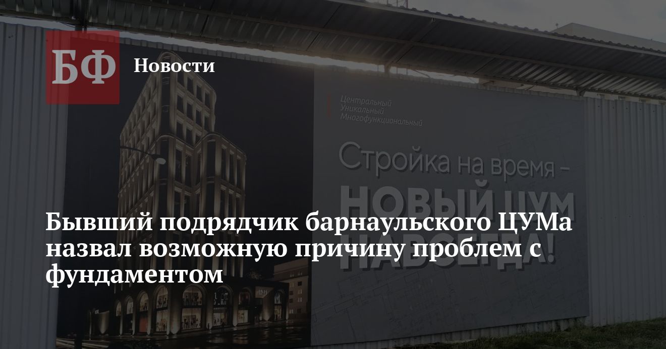 Возведение нового ЦУМа началось в 2024 году. До сегодняшнего дня стройплощадку покинули два барнаульских генподрядчика - ООО «Век-Строй» и ООО «А-строймонтаж». Согласно официальным версиям, «Век-Строй» переключился на возведение нового корпуса барнаульской поликлиники № 9, а «А-строймонтаж» сосредоточился на проекте застройки территории близ барнаульского аэропорта.