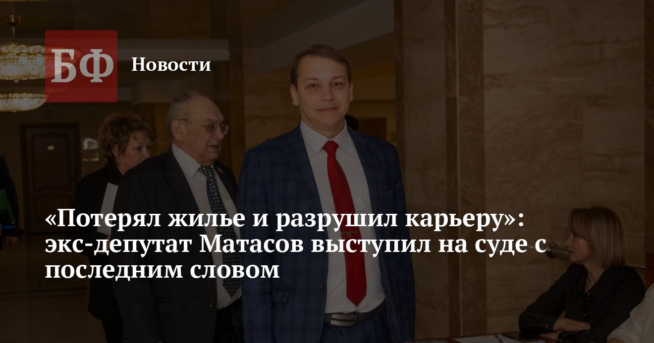 Он также сообщил суду, что добровольно возместил ущерб, причиненный государству, и отметил, что осознал последствия своих действий. Отдельно Сергей Матасов остановился на том, какое влияние произошедшее оказало на его жизнь. «Я уже понес суровое наказание самой жизнью. Я сложил депутатский мандат, потерял жилье, разрушил карьеру», - сказал он.