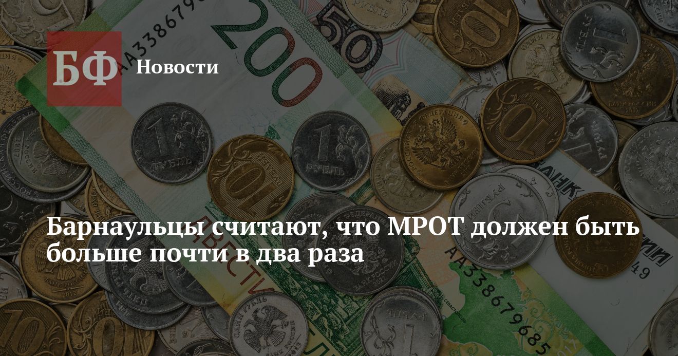 Опрошенные жители Барнаула видят действующий минимальный размер оплаты труда (МРОТ) весьма скромным. Они считают, что МРОТ должен составлять в среднем 53 500 рублей в месяц, сообщает SuperJob.