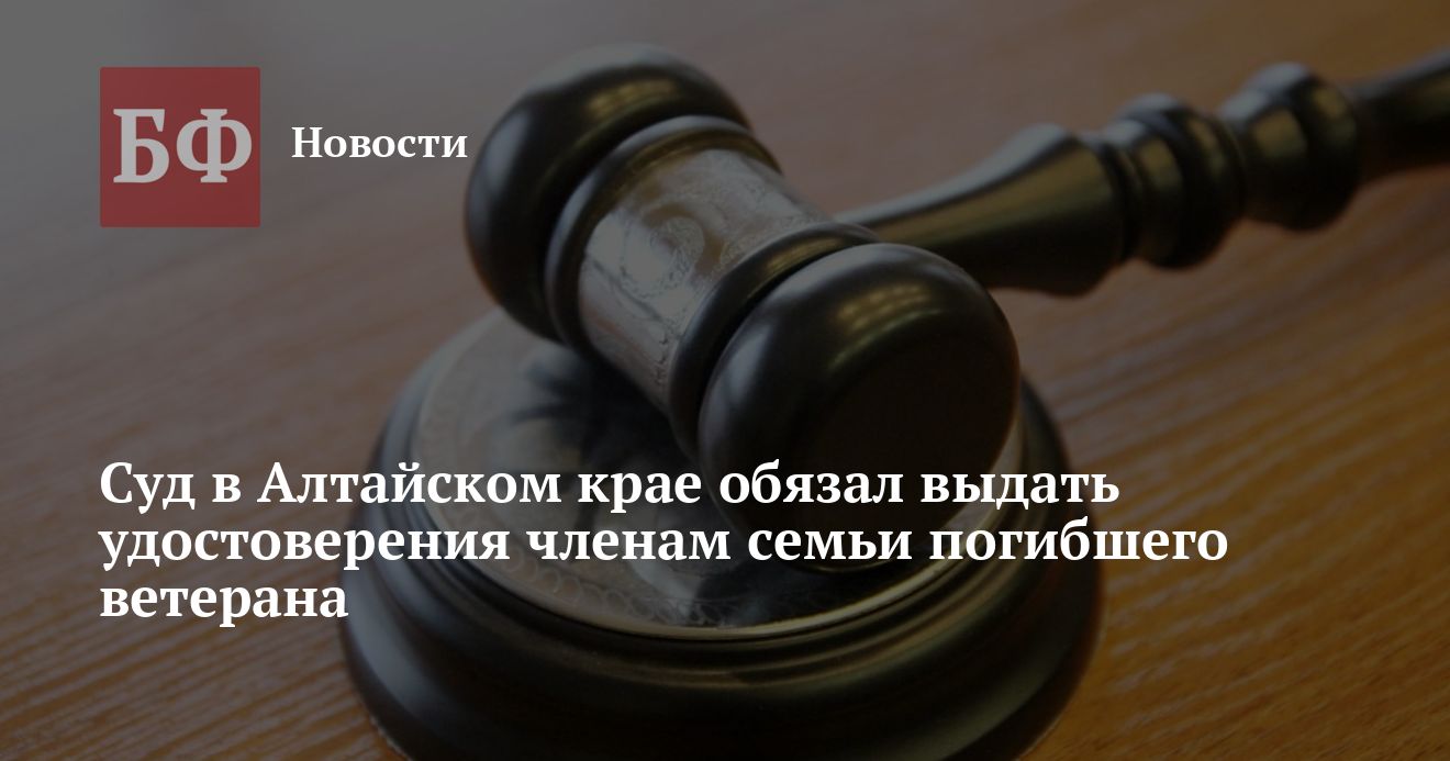 Изучив материалы дела, суд удовлетворил требования прокурора и признал за каждым из супругов право на выдачу им удостоверения членов семьи погибшего ветерана боевых действий. Военный комиссариат Алтайского края обязали выдать соответствующие документы в течение 60 дней со дня вступления решения суда в законную силу.
