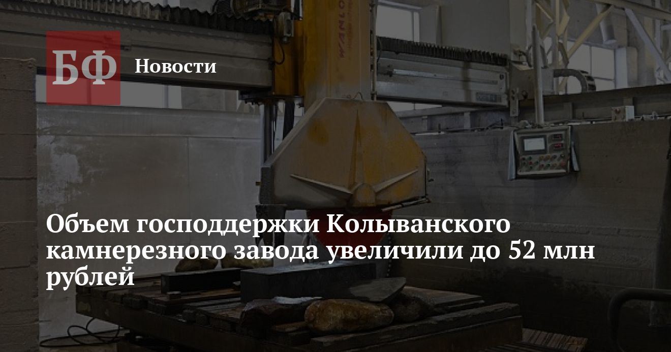 В 2026 году объем господдержки Колыванского камнерезного завода в Курьинском районе, который принадлежит Алтайскому краю, составит 52 млн рублей. Об этом сообщила пресс-служба регионального Заксобрания.