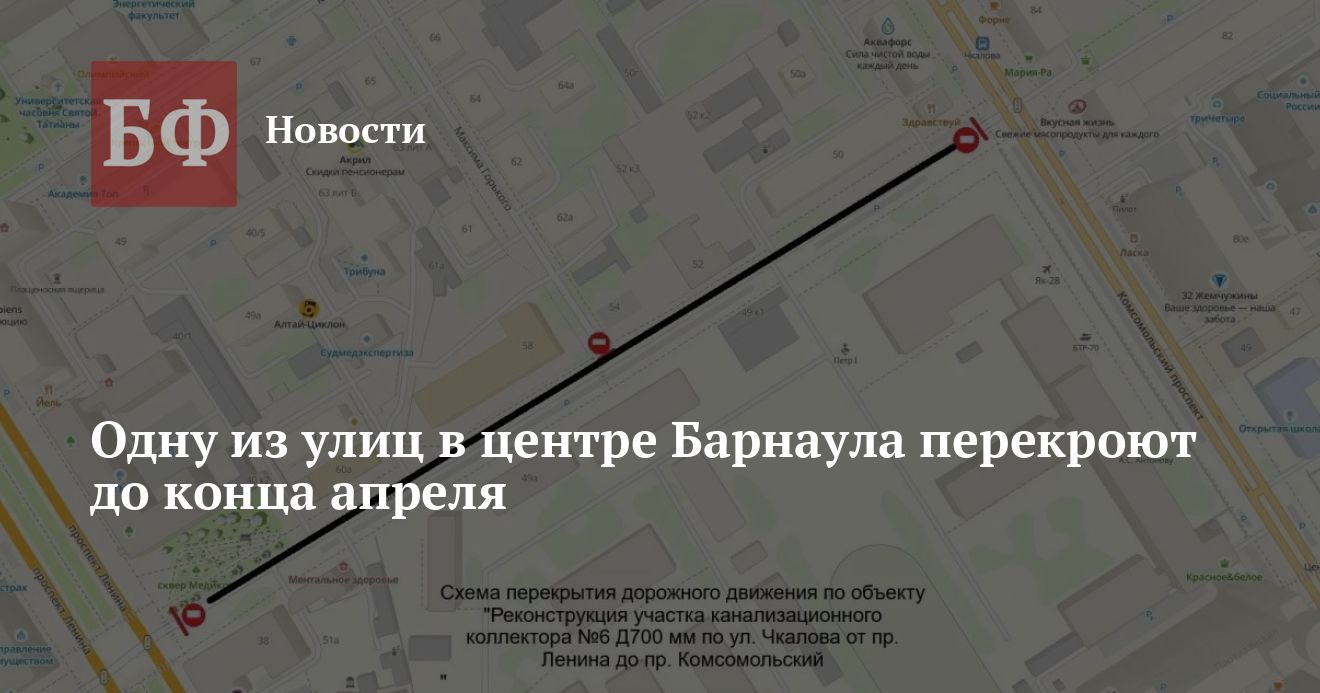 Барнаульский водоканал приступает к реконструкции канализационного коллектора на улице Чкалова, часть которой будет перекрыта для движения автомобилей на два с половиной месяца. Об этом сообщили в администрации Барнаула.