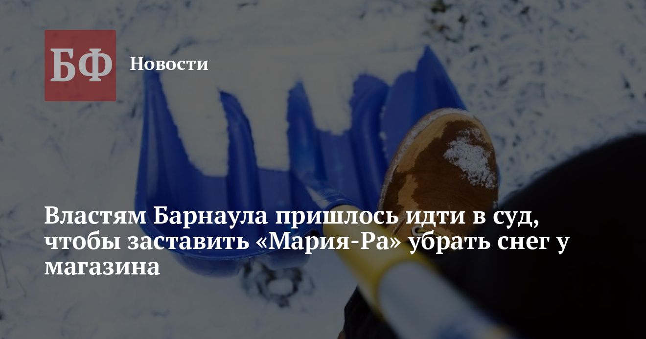 Администрация Индустриального района Барнаула обратилась в Арбитражный суд Алтайского края с иском к ООО ПФК «Мария-Ра», чтобы обязать компанию убрать снег и наледь рядом с одноименным магазином на улице Малахова, 142. Об этом сообщается в материалах судебной картотеки.