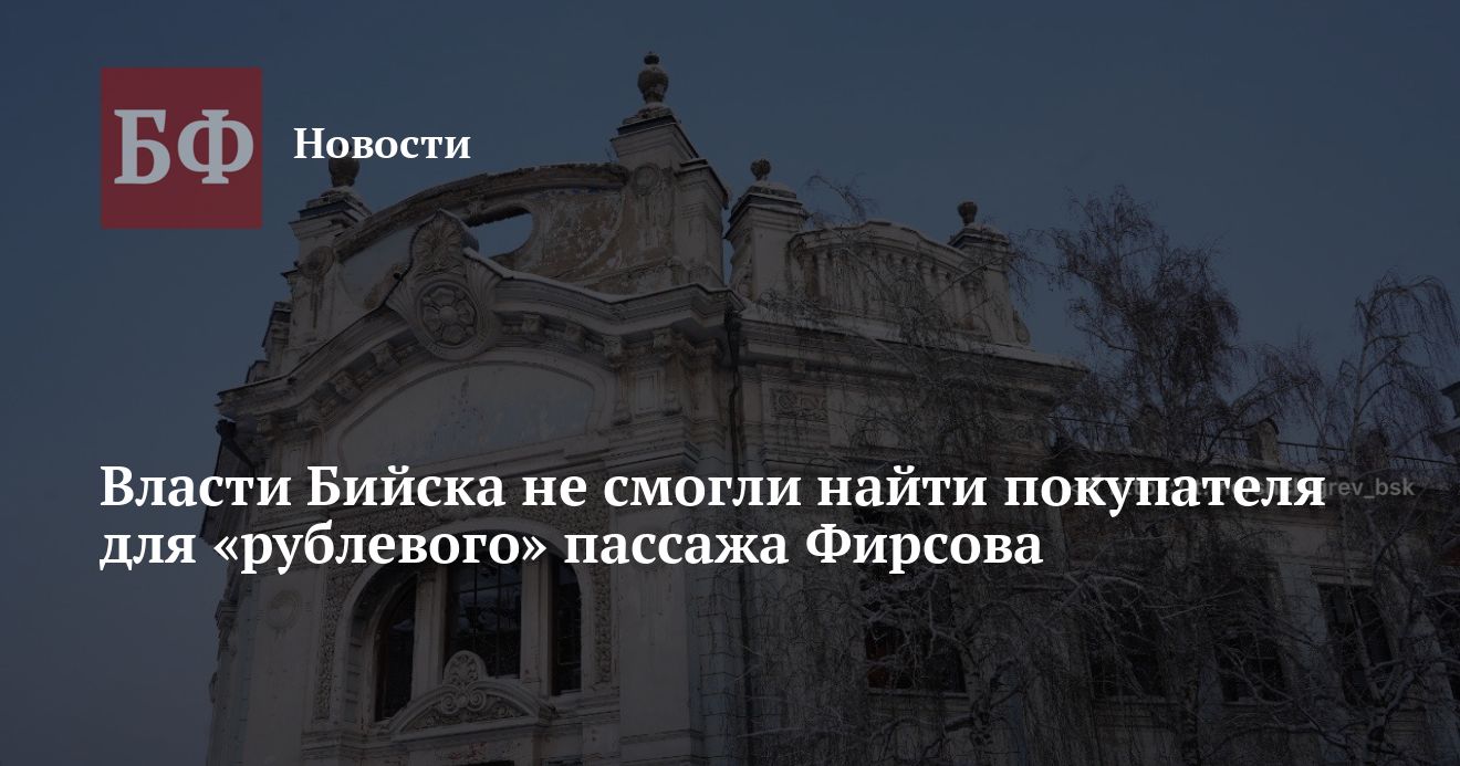 Аукцион на покупку пассажа Фирсова по адресу улица Льва Толстого, 146 анонсировал в своем Telegram-канале глава Бийска Виктор Щигрев в январе этого года. Он был объявлен с целью приватизации и восстановления здания. Само здание пассажа построено в 1907 году, а его площадь составляет 2165,5 кв. м. Оно является объектом культурного наследия, но находится в плачевном состоянии. Начальная цена составила 1,22 рубля с учетом НДС в 22 %.
