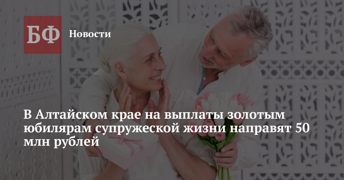 По инициативе губернатора Алтайского края Виктора Томенко пары, прожившие полвека в браке, получают единовременное денежное поощрение в размере 10 тысяч рублей. «Это знак уважения к семейным ценностям и признание заслуг тех, кто сохранил любовь и верность на протяжении долгих лет», - отмечают власти региона.