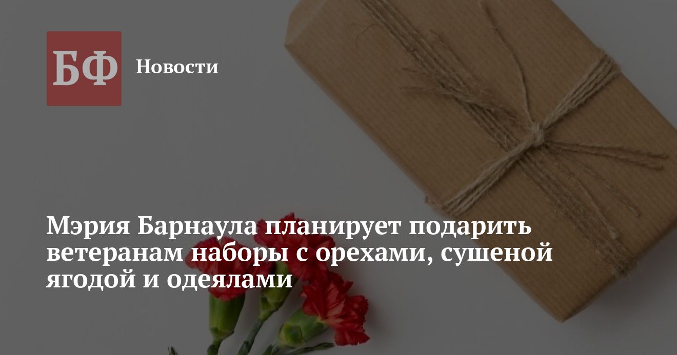 Администрация Барнаула заказала подарочные наборы для участников Великой Отечественной войны, которые вручат на День Победы. В составе наборов должны быть чай, орехи, ягоды, мед, одеяла и постельное белье, сообщается на сайте госзаупок.