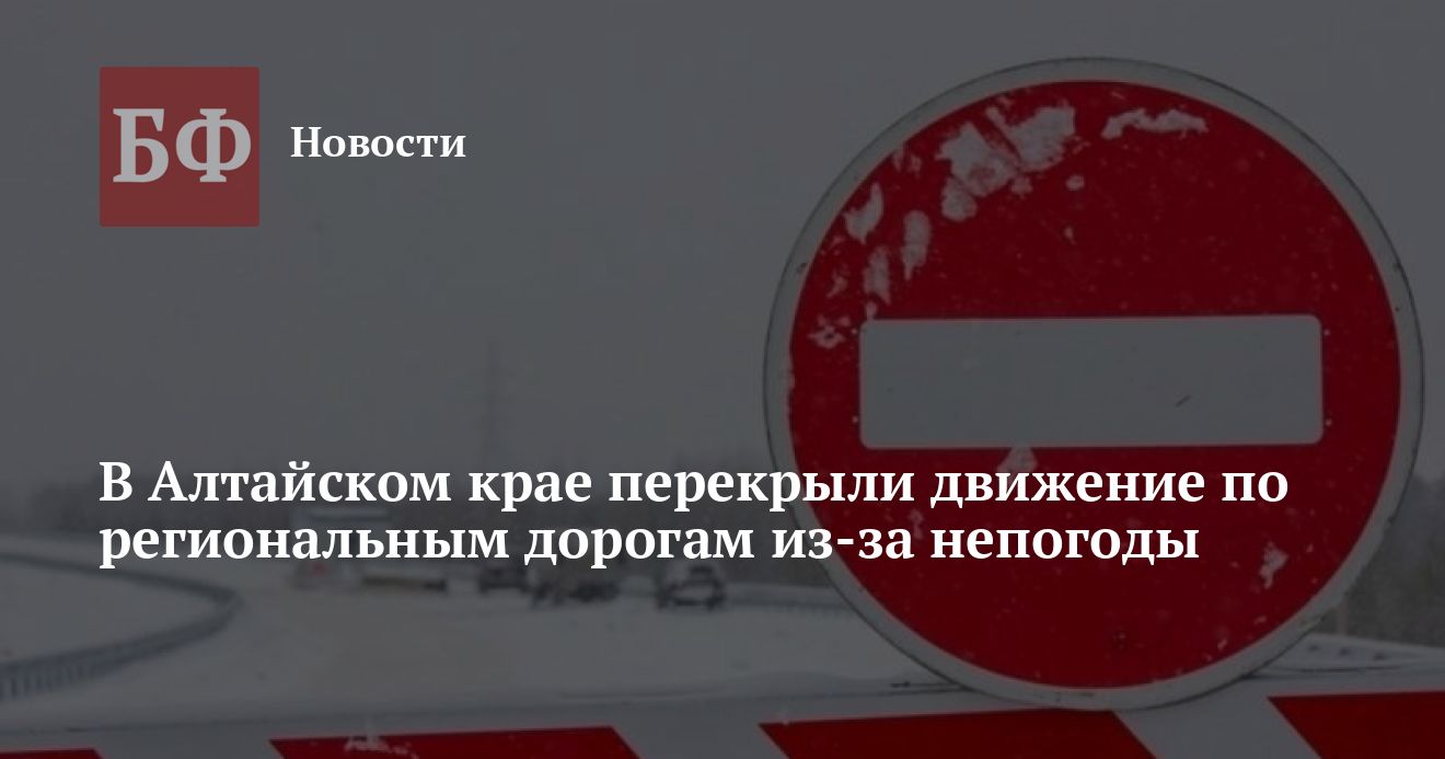 Сообщается, что движение по региональной дороге «Алейск-Чарышское» перекрыто для всех видов транспорта на участке от поворота на село Краснощеково до села Алексеевка. Причиной тому стали неблагоприятные погодные условия.