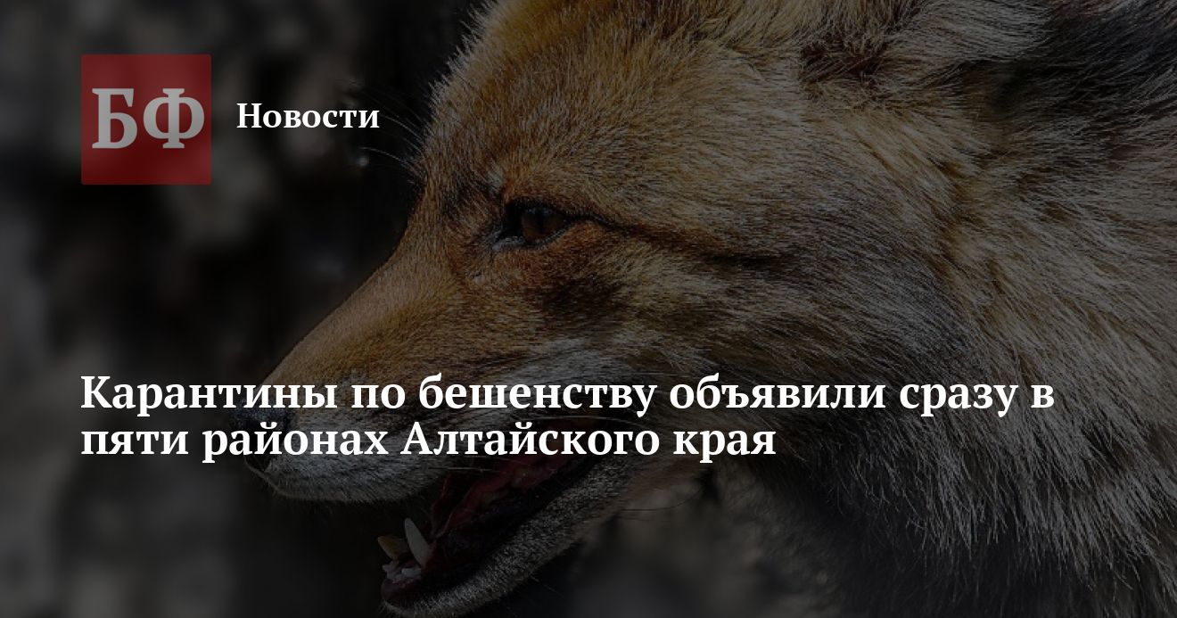 В Алтайском крае продолжает ухудшаться эпизоотическая ситуация. Губернатор региона Виктор Томенко подписал указы об установлении в пяти районах карантина из-за заболеваемости бешенством. Соответствующие документы опубликованы на портале правовой информации.