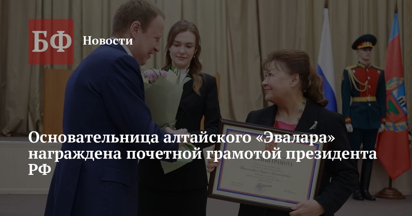 18 марта губернатор Алтайского края Виктор Томенко вручил основательнице ЗАО «Эвалар» Ларисе Прокопьевой почетную грамоту президента России. Об этом сообщил «Толк».