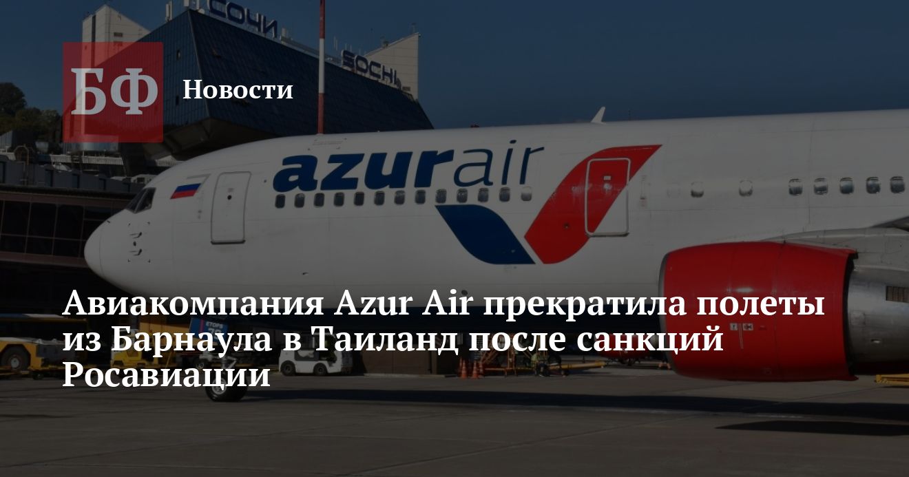 13 марта Ассоциация Туроператоров объявила, что Azur Air досрочно завершает полетную программу в Патайю (на месяц раньше намеченного срока) из ряда городов России, а полетная программа на Пхукет продолжится. Однако на днях стало известно, что Azur Air отменил рейсы и в Патайю, и в Пхукет из Барнаула, то есть из Барнаула в Таиланд улететь будет невозможно.