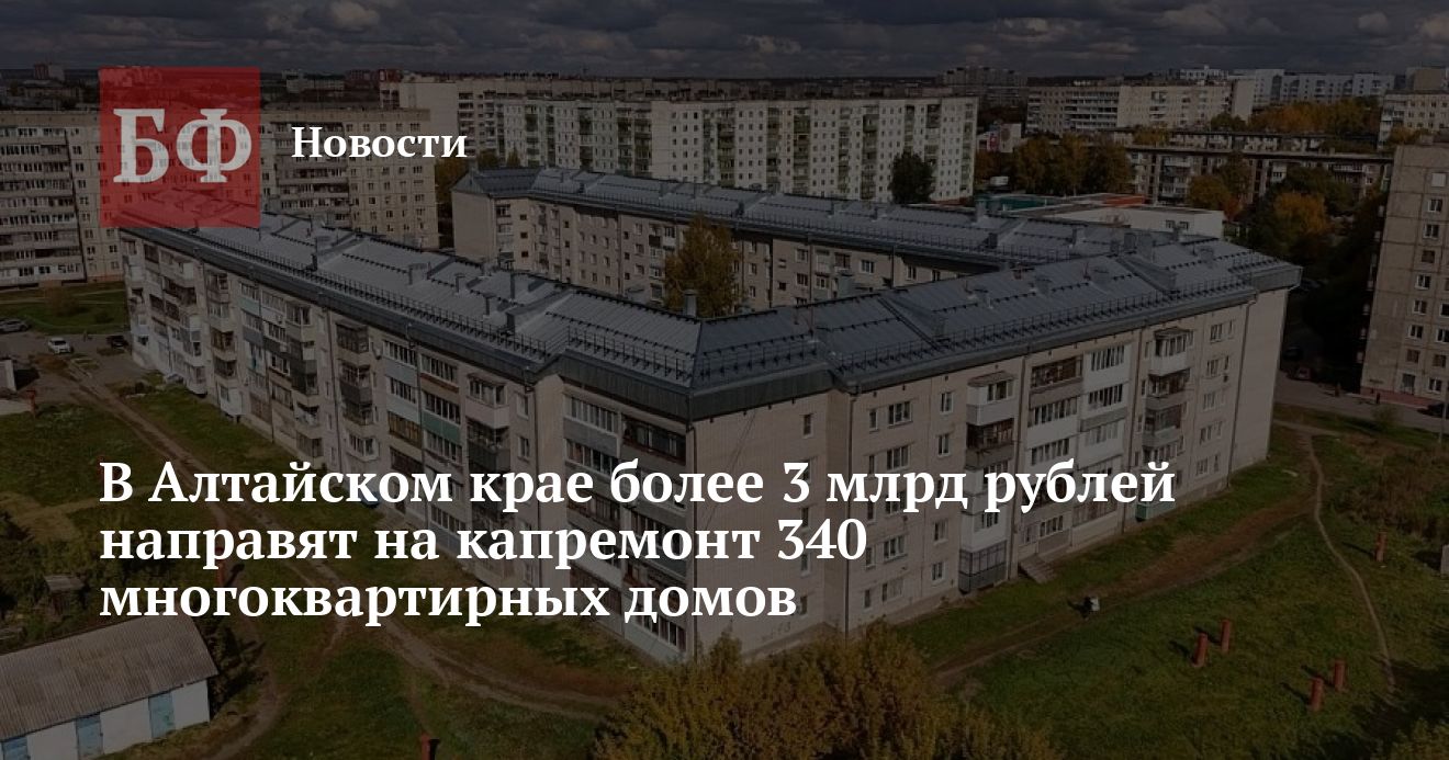 В 2026 году в Алтайском крае планируют провести капитальный ремонт 340 многоквартирных домов на сумму более 3 млрд рублей. Об этом сообщили в региональном Минстрое.