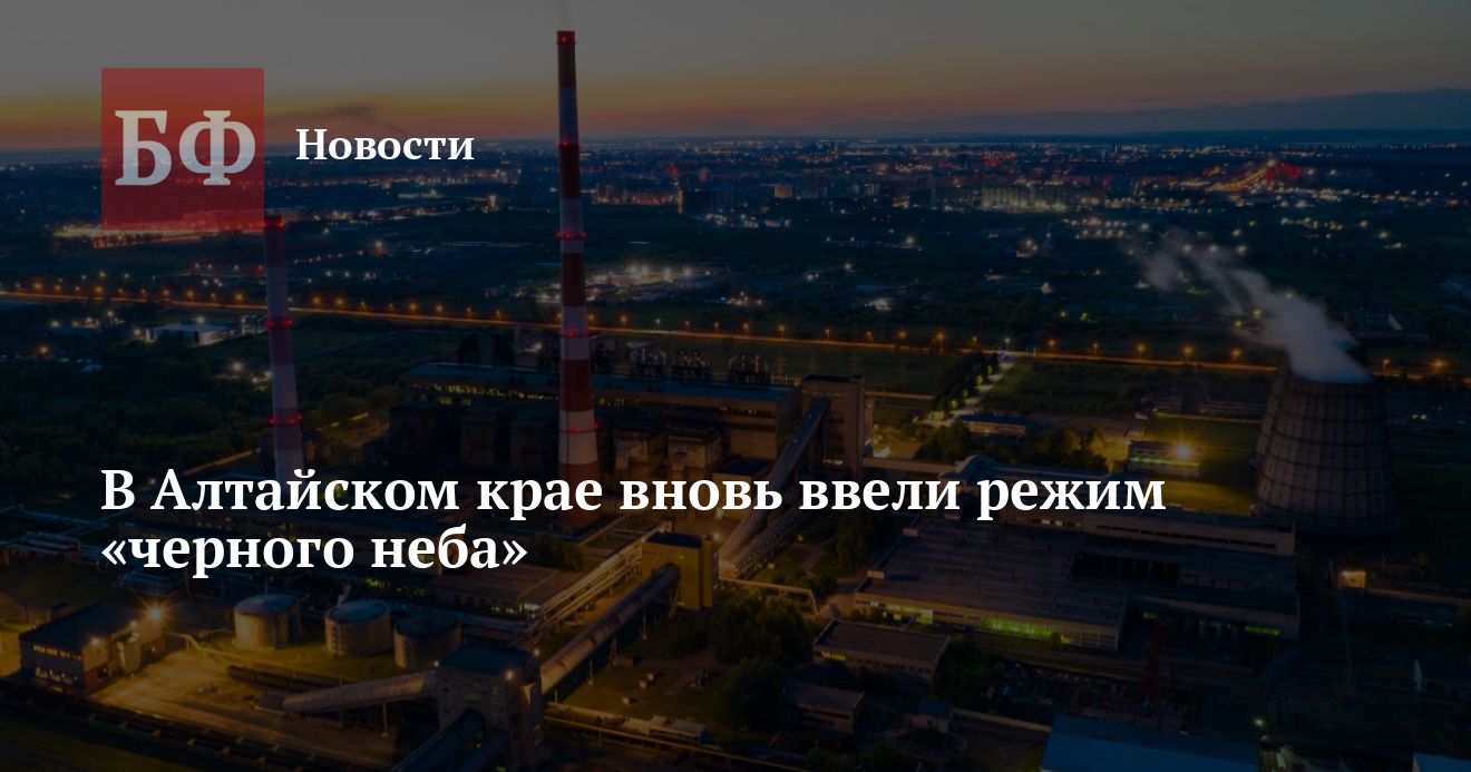 На территории городов и сел Алтайского края, в том числе Барнауле, объявлен режим «черного неба», который продлится с 18:00 27 марта до 13:00 29 марта. Причиной тому стали неблагоприятные погодные условия, способствующие накоплению загрязняющих веществ в атмосфере.