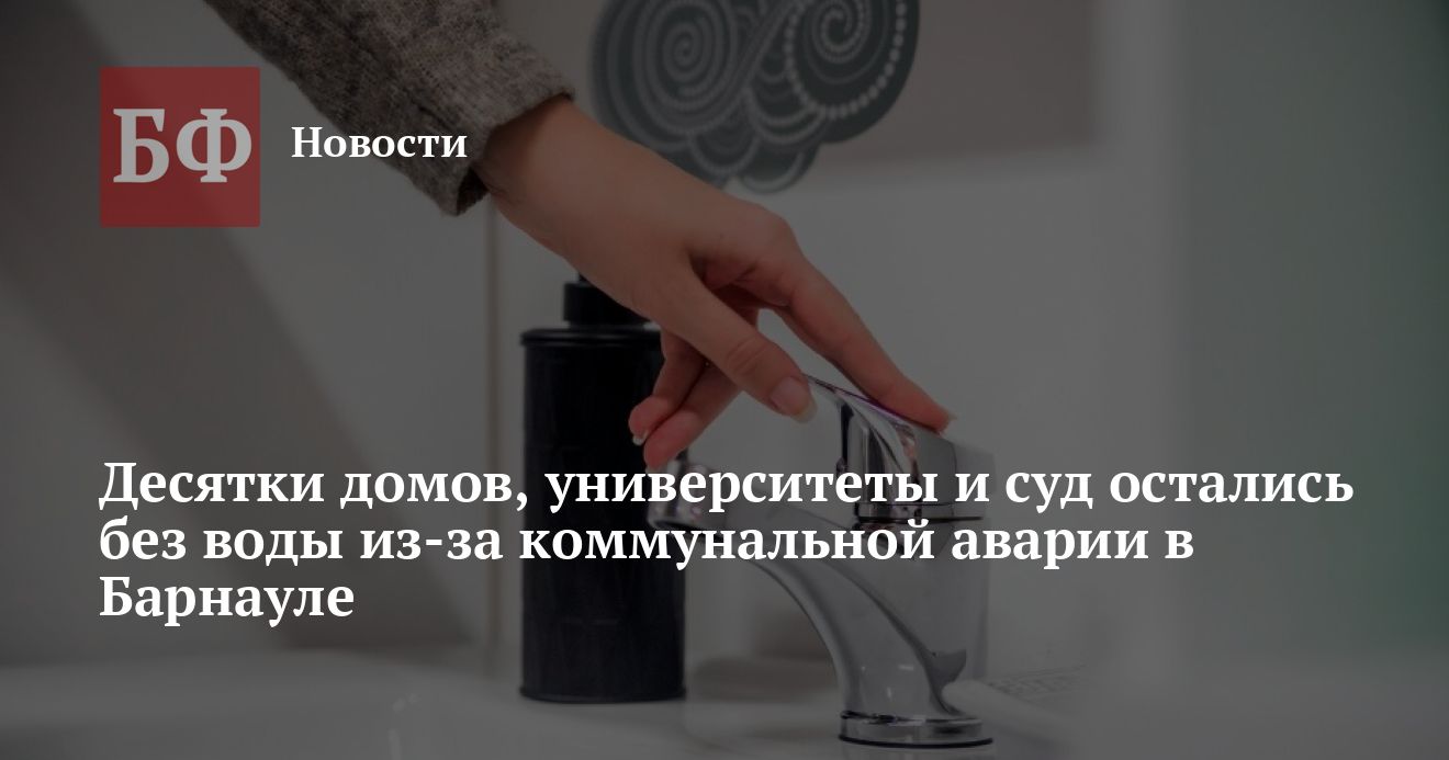Также водоснабжение отсутствует в 30 частных домах по переулку Ядринцева, 115, 117; улице Крупской, 120, 122; улице Папанинцев,166-180а, 185-195а; в бойлерных на улице Крупской, 93а, 109 и улице Папанинцев, 116а, 126, 128, 194 (всего шесть пунктов); в административных зданиях по улице Крупской, 107, 107а, 139а, 108 (два корпуса педуниверситета), улице Папанинцев, 126 (медуниверситет), 130 (Центральный районный суд Барнаула), 190-194; улице Челюскинцев, 82-84в, улице Песчаной, 74а и 74б (детский сад) (всего 17 зданий).