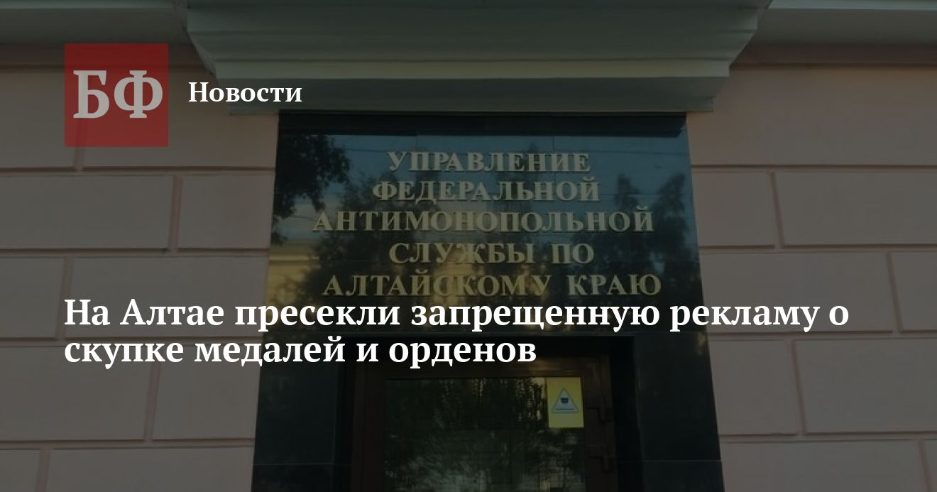 Алтайское краевое УФАС возбудило дело о ненадлежащей рекламе скупки медалей и орденов, так как в России запрещено продавать и приобретать государственные награды СССР. Об этом пресс-служба ведомства сообщила 8 апреля.