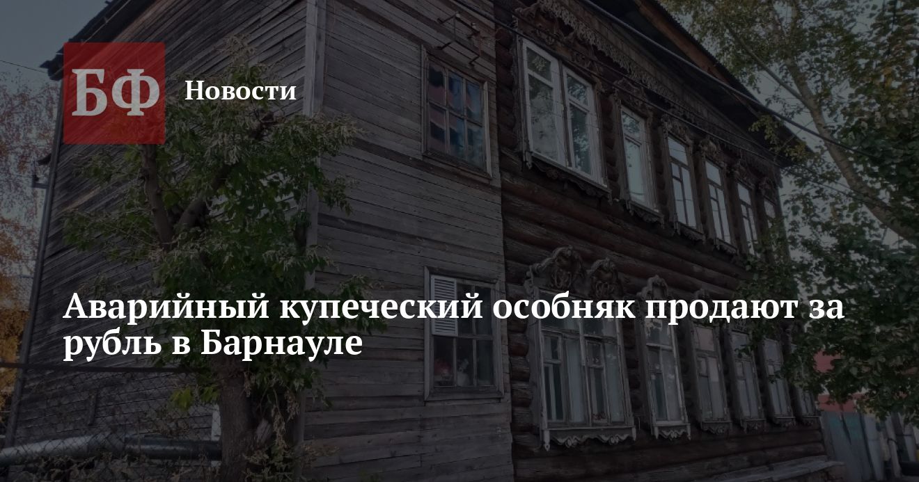 Торги объявили 6 апреля. На странице лота сообщается, что деревянный двухэтажный дом «Особняк купеческий» по адресу улица Никитина, 128, который был построен в начале XX века, находится в муниципальной собственности Барнаула и является объектом культурного наследия. Общая площадь здания составляет 268,5 кв. м. Его продают в рамках программы приватизации. Начальная максимальная цена установлена в один рубль без учета НДС, а шаг аукциона - 570 тысяч рублей. Размер задатка составил 2,2 млн рублей. Подать заявку на участие можно до 4 мая 2026 года.