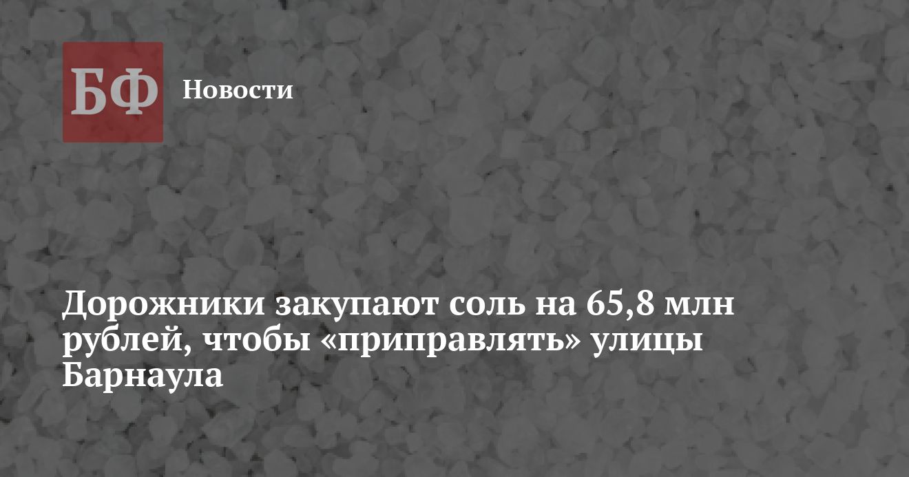 МБУ «Автодорстрой», которое занимается содержанием улично-дорожной сети Барнаула, закупает соль на 65,8 млн рублей. За данные средства планируется приобрести 9,135 тысячи тонн продукции, сообщается на сайте госзакупок.