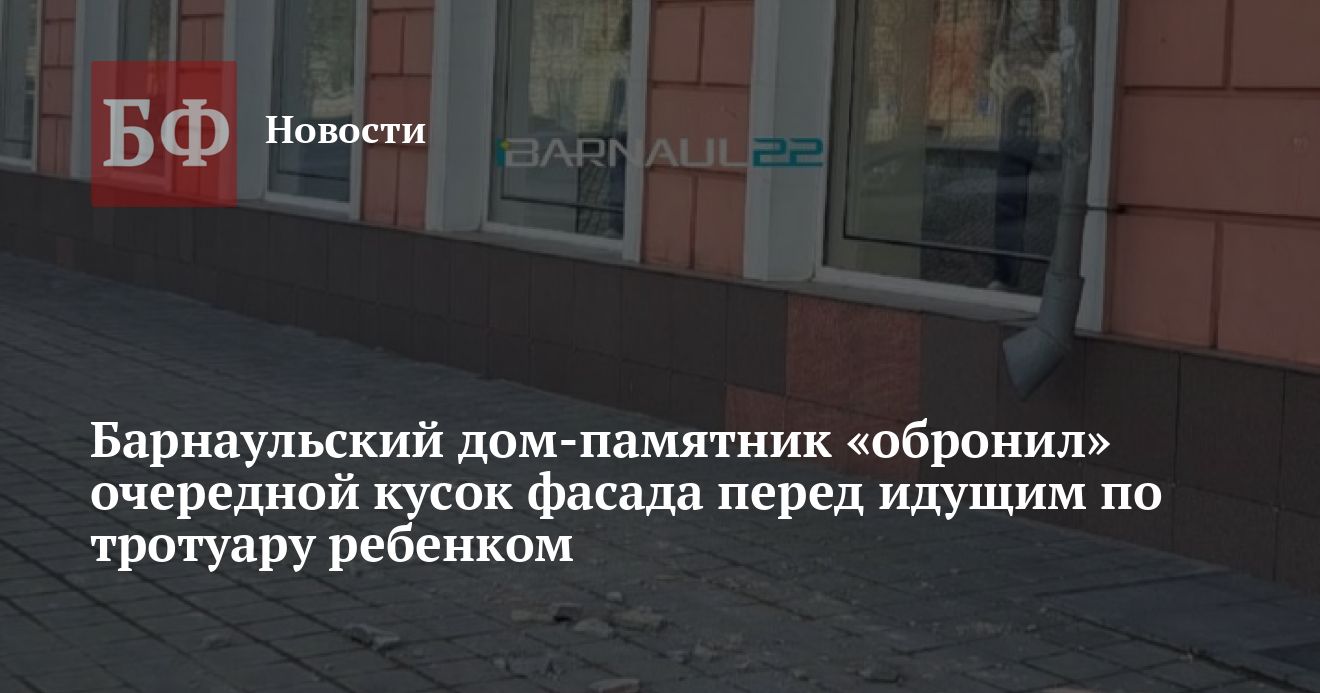 О новом инциденте написала в интернет-сообществе Barnaul 22 мама девочки, ставшей его свидетельницей. «Сегодня около 16:00 перед моей дочерью с фасада дома по адресу проспект Ленина, 85 обрушились кирпич и часть облицовки. К счастью, все упало рядом, и она не пострадала. Почему нужно ждать, пока это закончится трагедией?» - негодует женщина.
